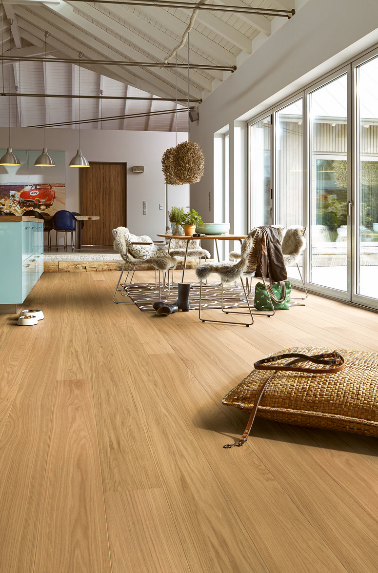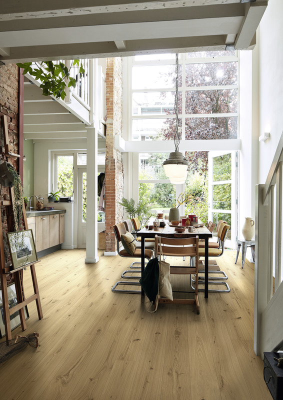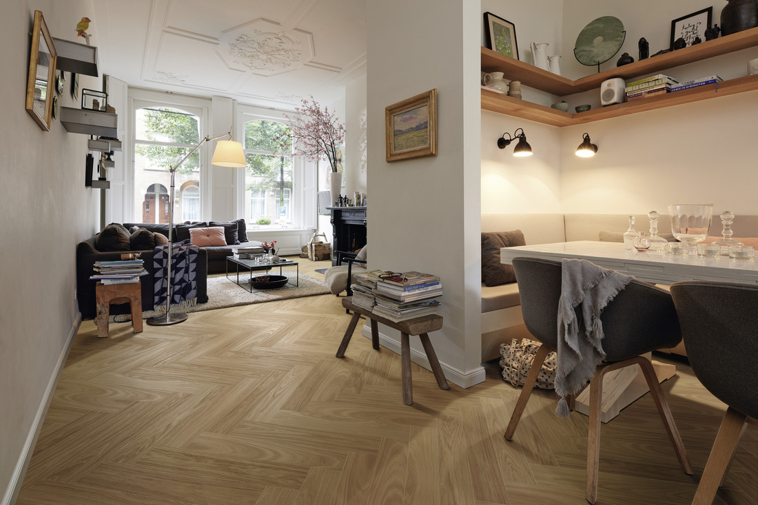 Mehrschichtparkett ist die moderne Variante eines Dielenbodens. Diese Parkettart bringt viele Vorteile mit sich. Das Material bewegt sich durch Umwelteinflüsse deutlich weniger und schont durch geringeren Ressourcenverbrauch die Umwelt. Der Aufbau kann zwei- oder dreischichtig sein. Die sichtbare obere Schicht nennt man Nutzschicht. Sie ist aus sorgfältig ausgewähltem, hochwertigem Edelholz und muss vorschriftsmäßig mindestens 2,5 Millimeter dick sein. Je stärker die oberste Schicht ist, desto öfter kann man sie abschleifen. Unter dieser Schicht befindet sich die Mittellage und eventuell noch eine dritte Schicht, die meist aus Nadelholz besteht. Sie verbessern die Stabilität insbesondere bei einer quer verlaufenden Mittellage. Dieser stabilere mehrschichtige Aufbau ermöglicht auch das Anbringen einer Klick-Verbindung, die die leicht verlegbaren Parkettböden von heute auszeichnet.